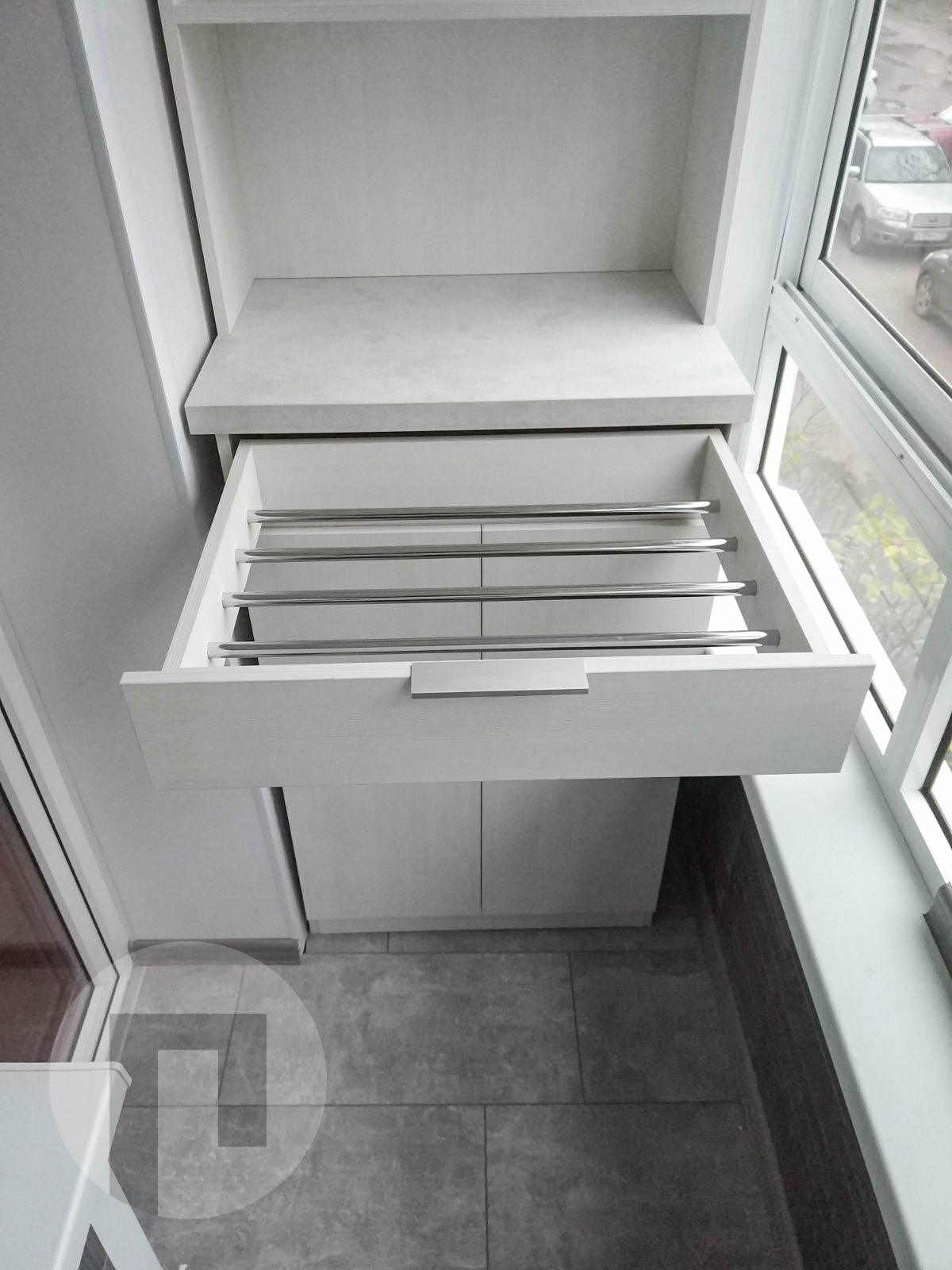 Белый шкаф на балконе