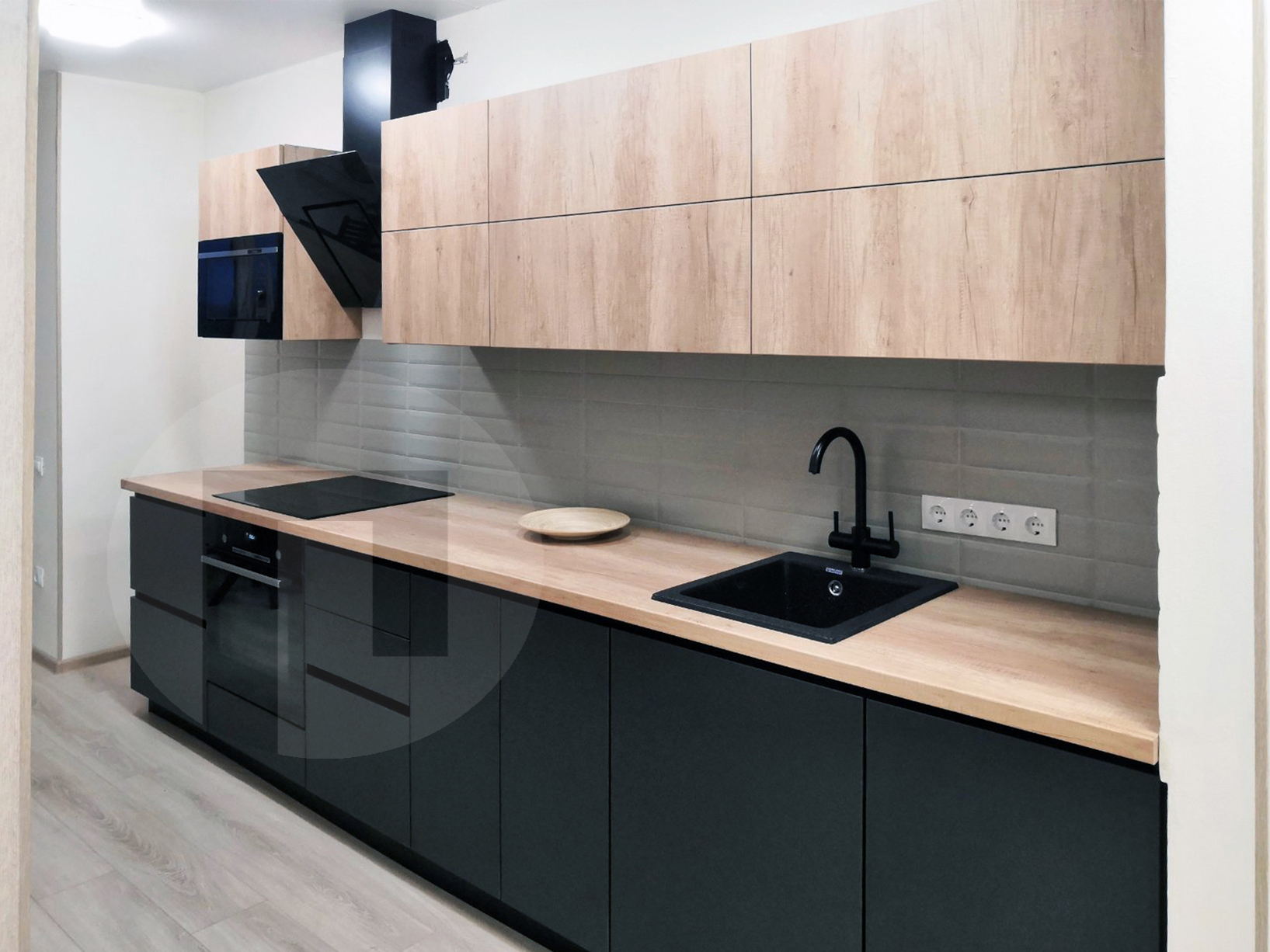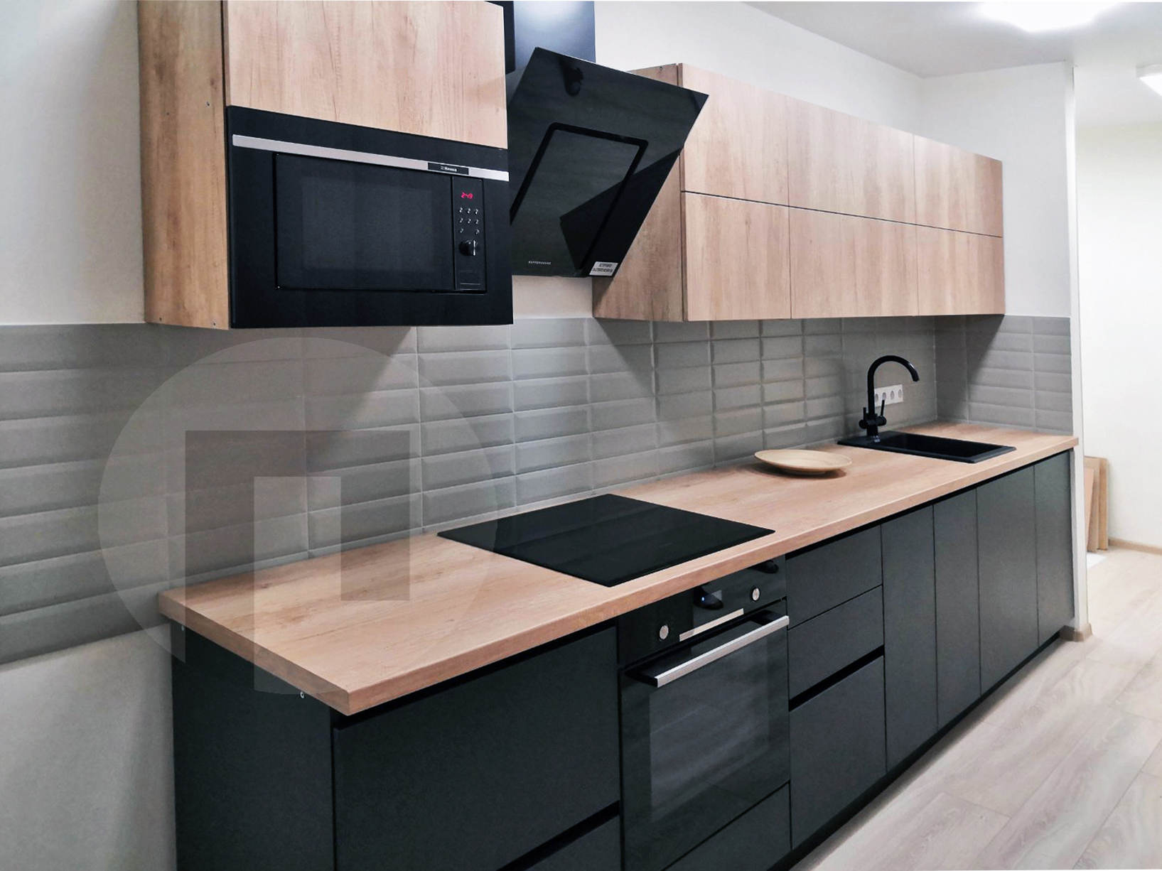 Прямая кухня Акрил в черном цвете №2229