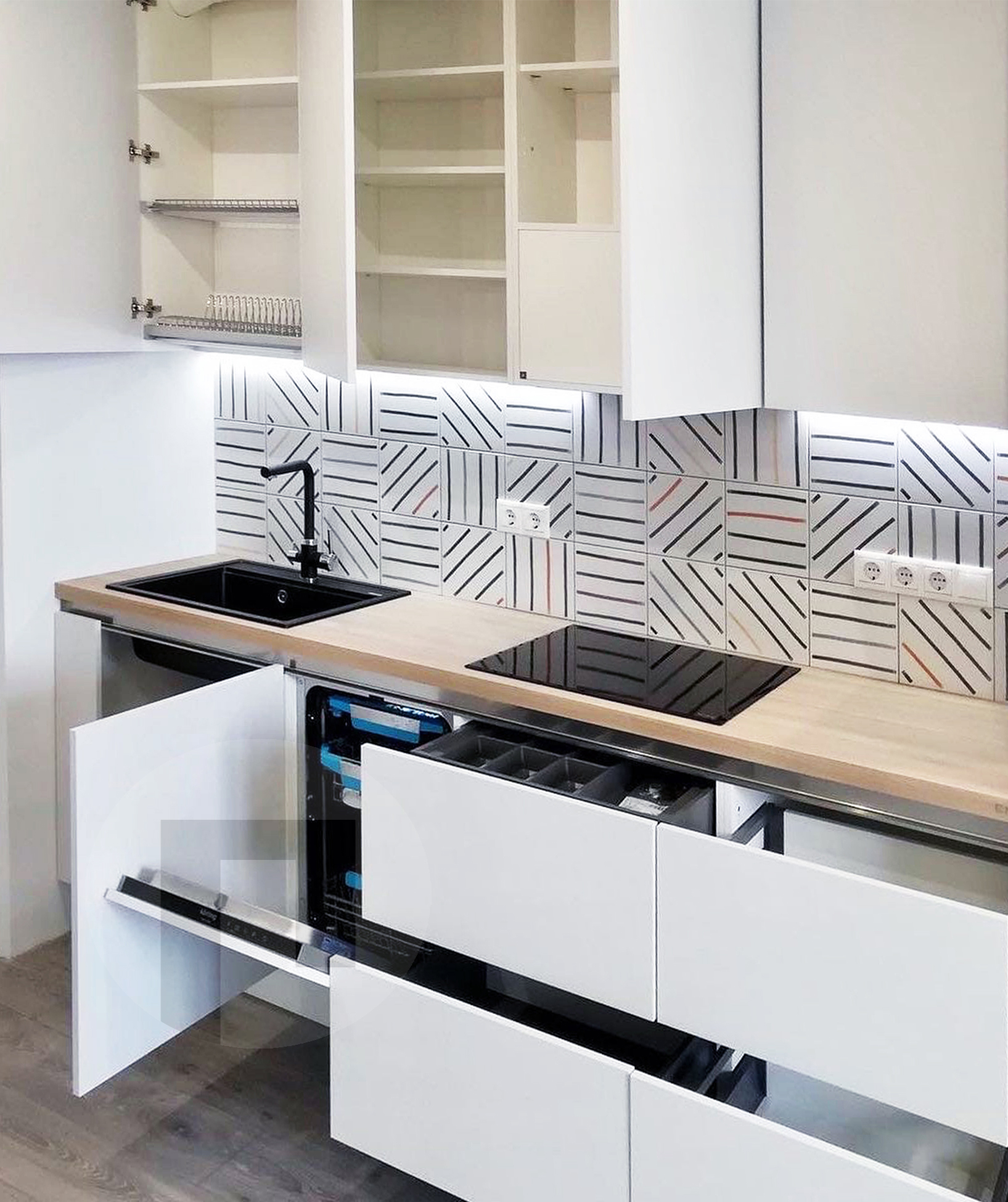 Прямая кухня белые фасады Пластик №2228