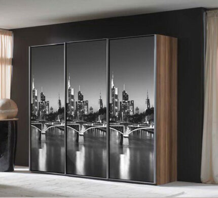Шкаф купе в спальню с фотопечатью с обувницей