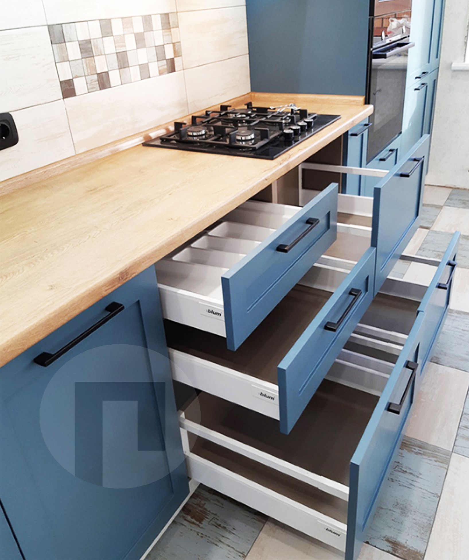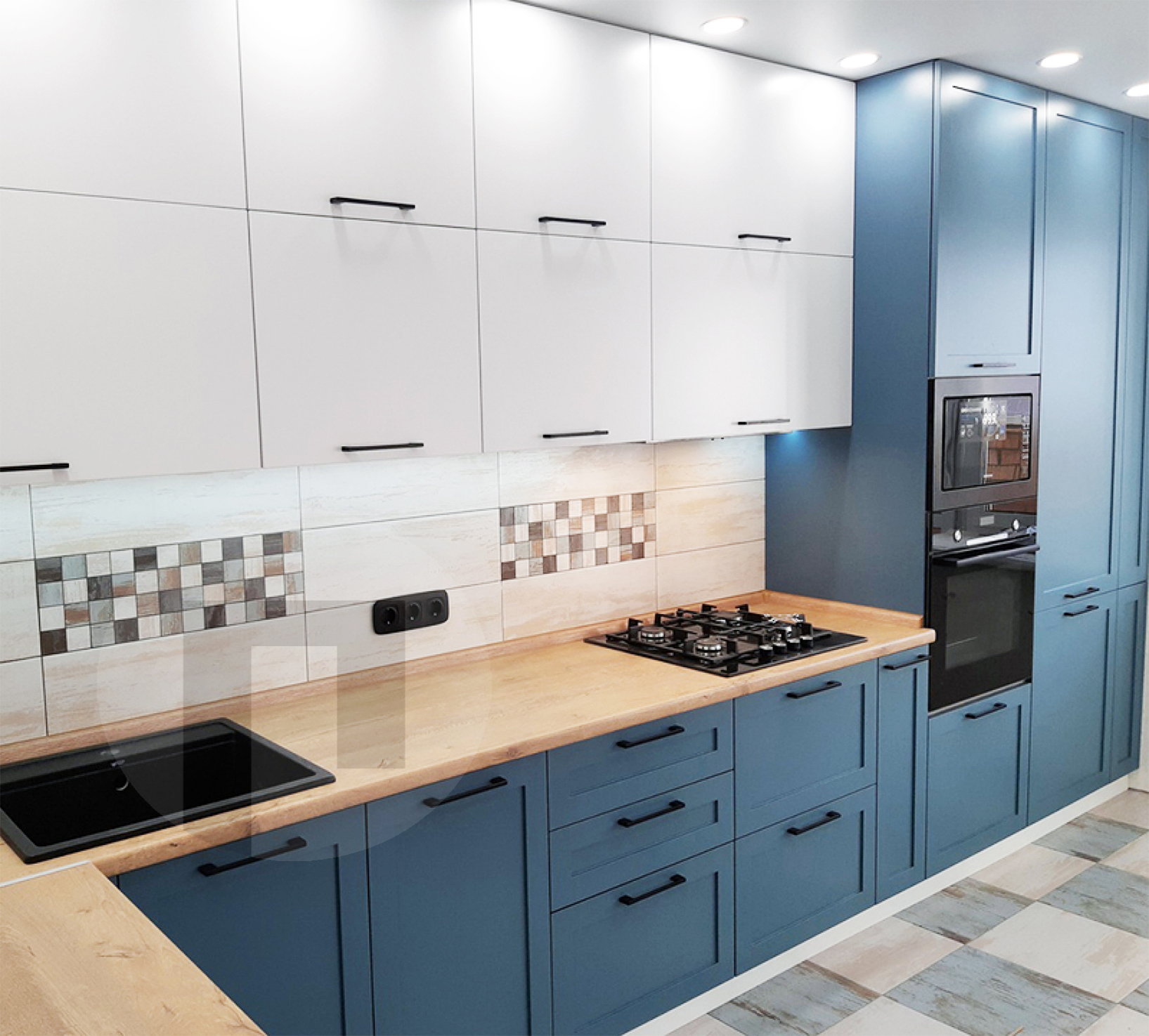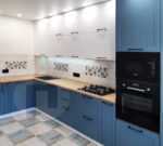 Угловая кухня из МДФ в синем цвете №2276